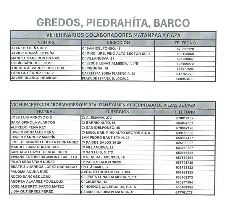 1. Por los Veterinarios Colaboradores que actúan en su municipio, cuyos contactos se incluyen en anexo.